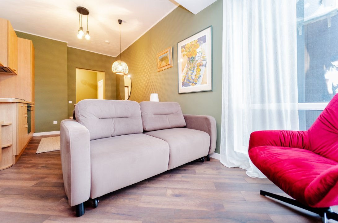 Apartament cu reparaţie în Centrul orașului, vis-a-vis de parc! Cu o suprafață de 45 mp, acest apartament dispune de un dormitor luminos și o bucătărie cu zonă de living. Reparat cu materiale de înaltă calitate și dotat cu toate utilitățile moderne, locuința este complet mobilată și gata pentru a fi locuită imediat. Situat la etajul 3 în bloc nou cu 13 etaje, partea de mijloc a clădirii. Geamurile panoramice asigură o lumină naturală din abundență și o priveliște plăcută către curtea interioară. Designul interior este unul deosebit, iar planimetria bine gândită.