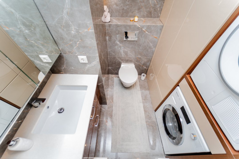 Mai mult decât atât, apartamentul este complet echipat cu mobilă italiană de înaltă calitate și tehnică germană.