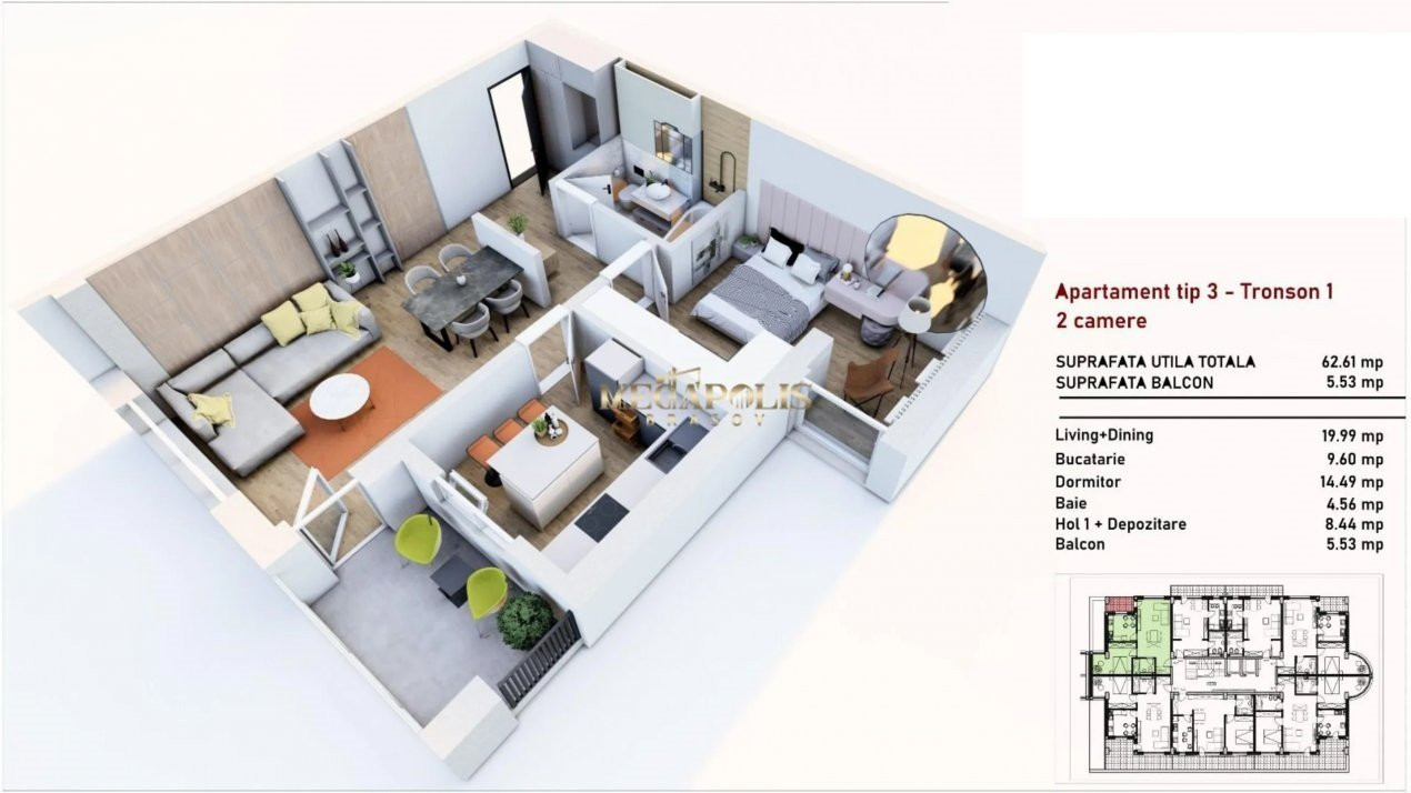 Situat în inima cartierului Tractorul, la doar 300 de metri de Coresi Mall, "Armonia Residence" reprezintă noul standard în materie de locuire urbană. Acest complex modern și elegant include un total de 118 apartamente, variind de la garsoniere la apartamente de 2 și 3 camere, proiectate pentru a satisface cele mai exigente cerințe.