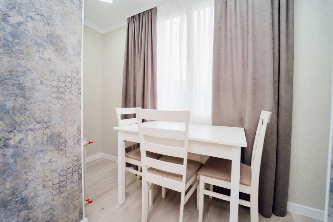 Apartamentul este format dintr-un dormitor separat, living spațios și o bucătărie replanificată, mărită din contul balconului, ceea ce îi conferă un plus de confort și funcționalitate.