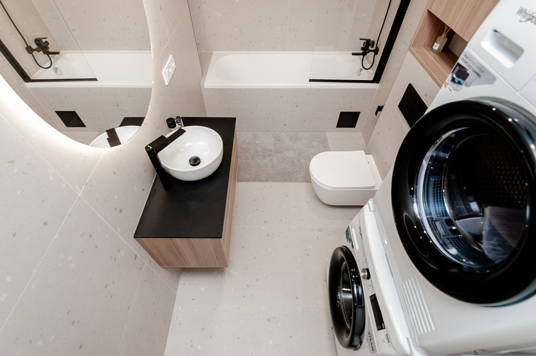 - o bucătărie cu zonă de living amenajată cu gust,