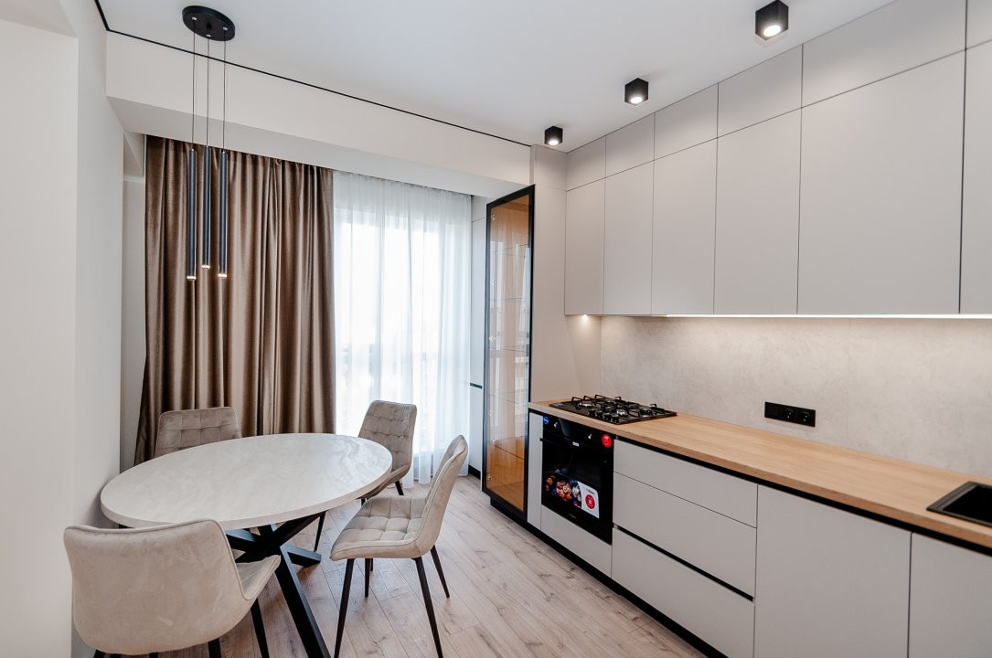 Apartamentul este finisat cu materiale de calitate superioară, având o euroreparație impecabilă, care pune în valoare fiecare detaliu.