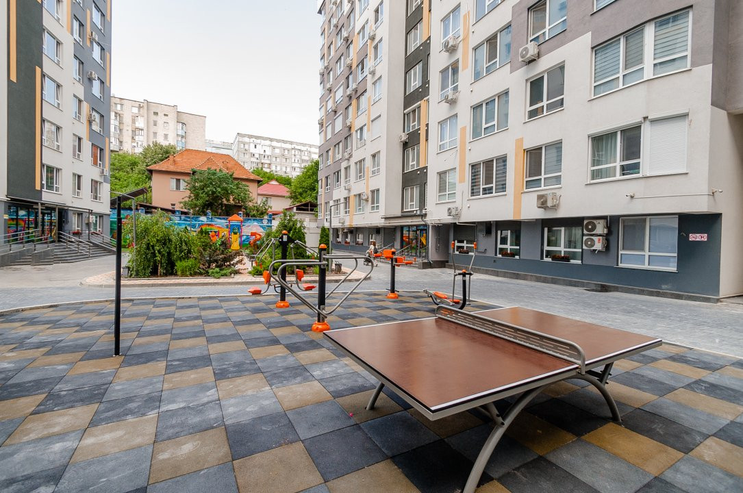 Blocul face parte dintr-un complex rezidențial cu curte de tip închis, asigurând astfel un mediu sigur și liniștit pentru întreaga familie. În curte se află un teren de joacă modern, perfect pentru copii.