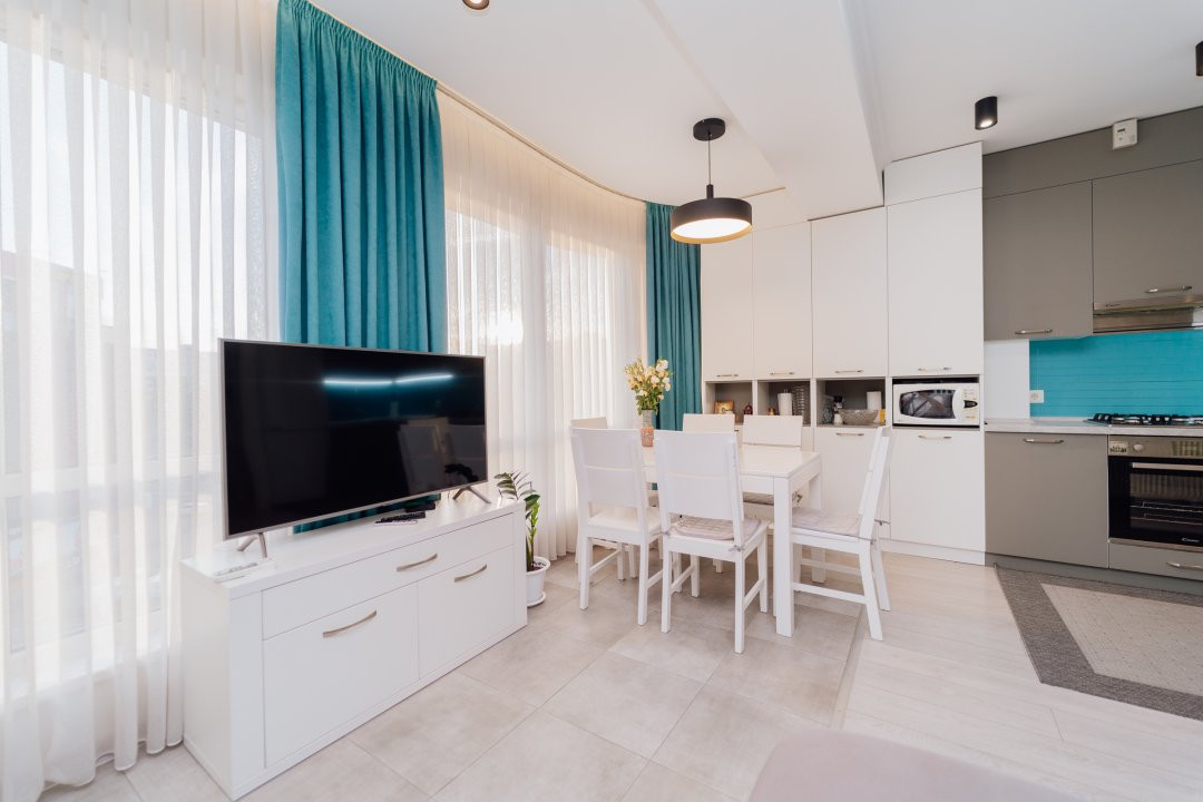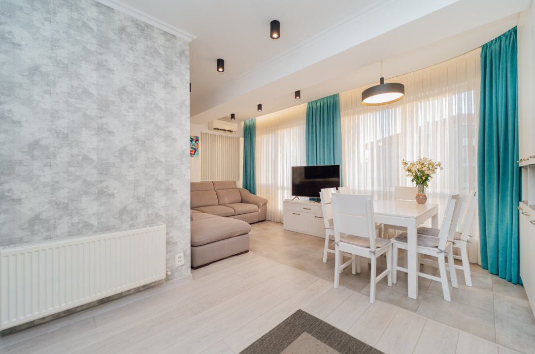 Apartamentul dispune de încălzire autonomă, încălzire prin podea, aer condiționat, dotat cu mobilă și tehnica necesară.