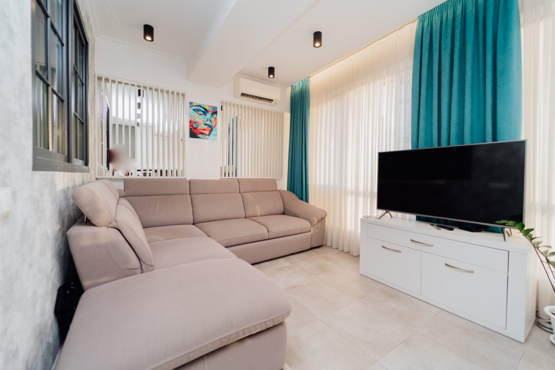 Apartamentul este situat la etajul 6 din 15, cu o suprafață de 71,5 mp, finisat cu reparație euro.