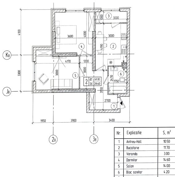 Compartimentare 2 dormitoare, antreu, bucatarie, balcon, bloc sanitar.