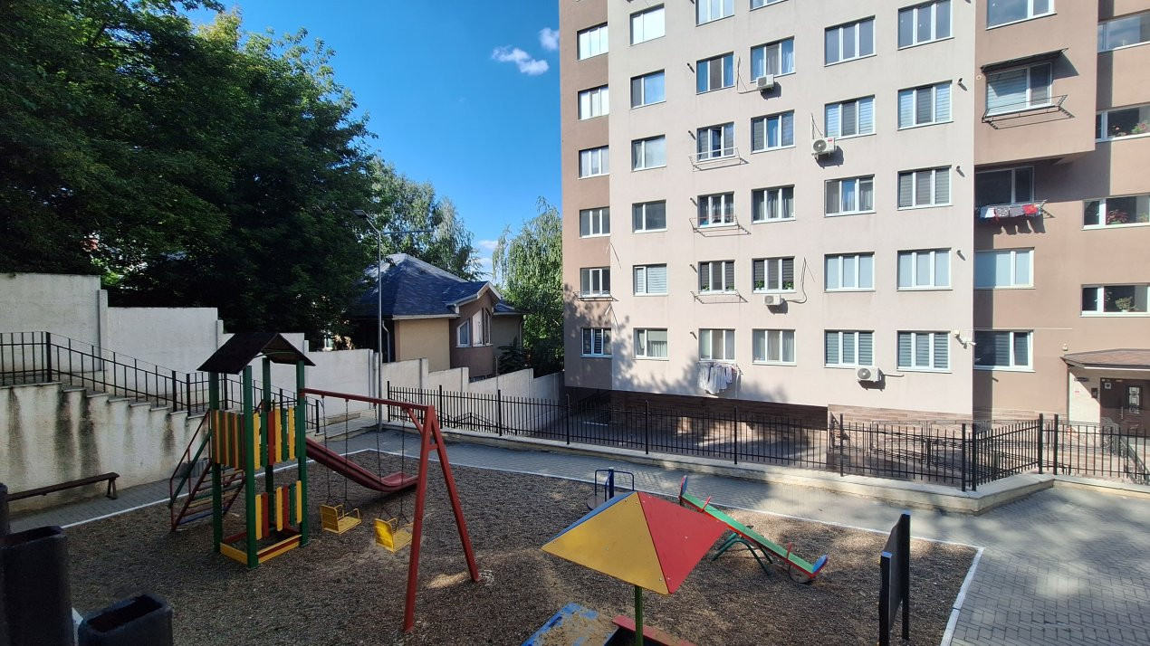 Curtea blocului este amenajată cu teren de joacă pentru copii și zone de odihnă, oferind un mediu plăcut și sigur pentru întreaga familie.