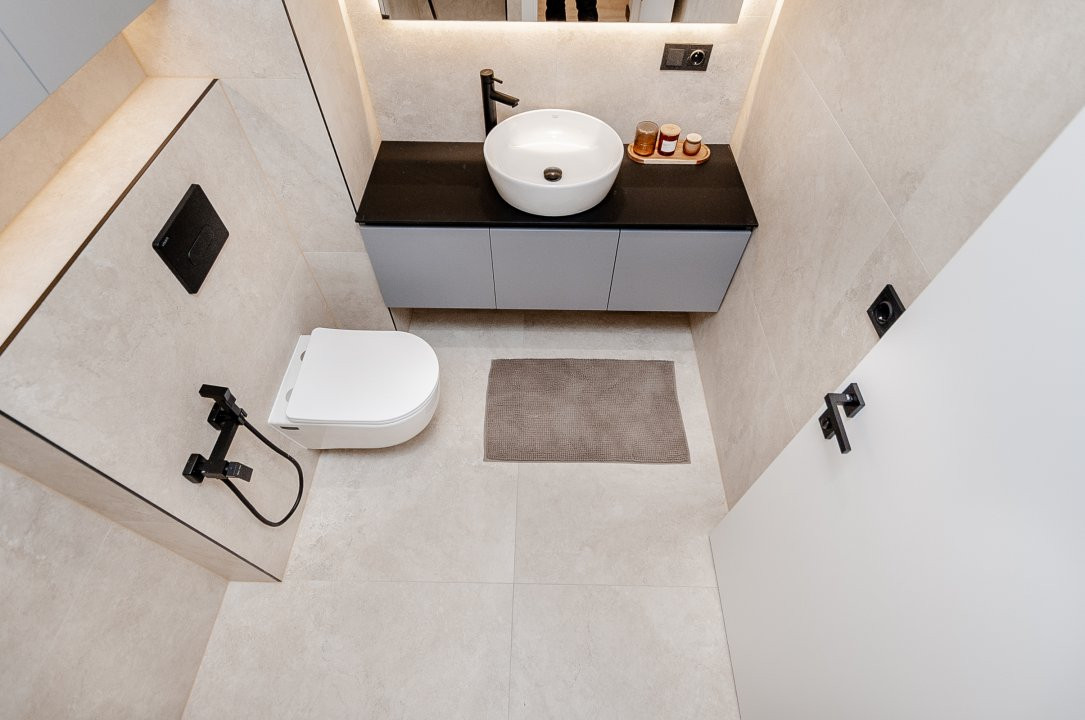 Un bloc sanitar modern, finisat cu materiale de calitate superioară.