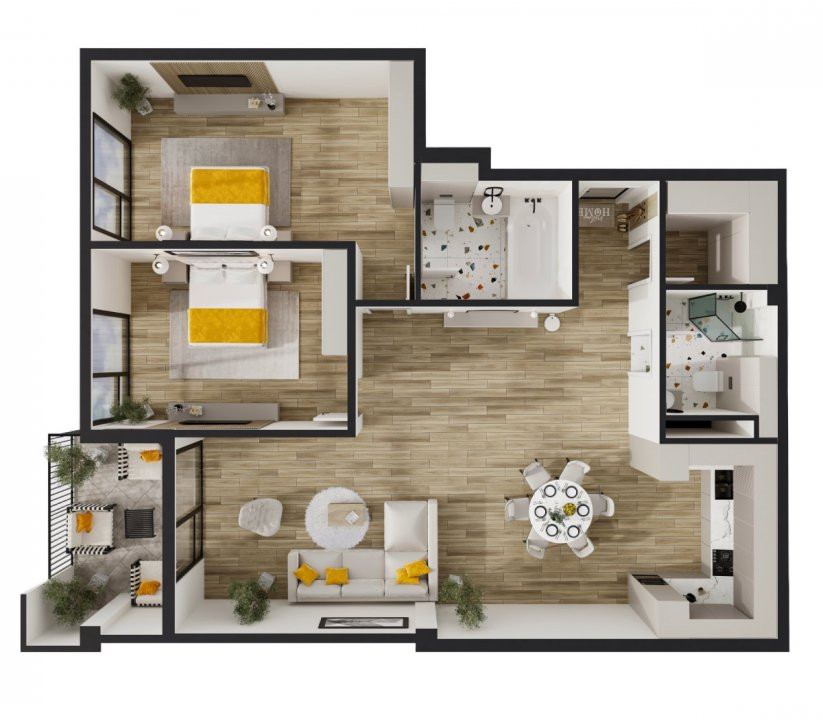 Apartament spațios cu 2 camere + living, 98,51 mp
