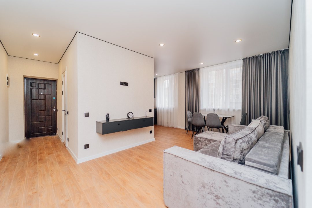 Locuința are suprafața de 56 m2 și este compartimentată în: 2 camere, living, bucătărie, bloc sanitar și antreu.