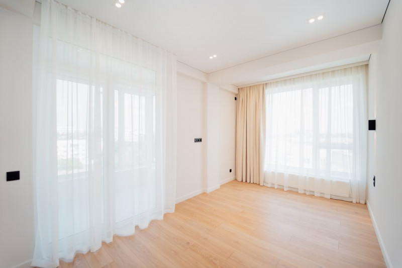Apartamentul beneficiază de încălzire autonomă și aer condiționat, iar geamurile panoramice asigură o lumină naturală abundentă și o panoramă superbă asupra zonei.