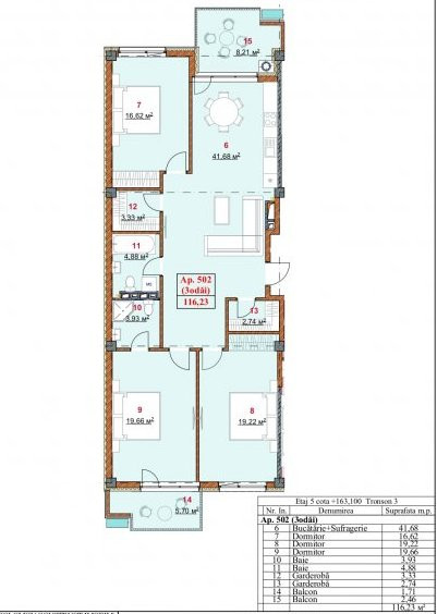 - Înălțimea tavanelor în apartamente 2850 mm;