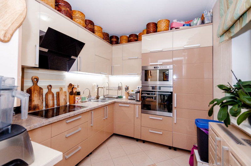 Apartamentul beneficiază de 4 camere, o bucătărie complet echipată, 2 băi și 2 balcoane.