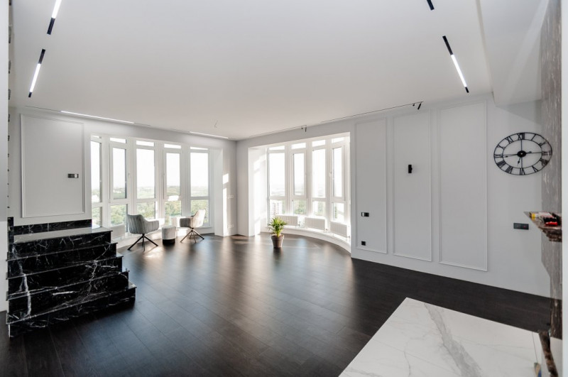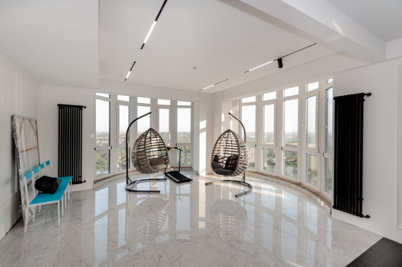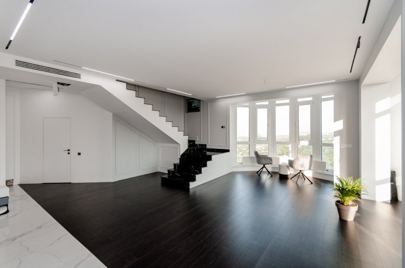 Un apartament generos, cu o suprafață totală de 352 mp, situat la etajele 12 și 13 (etaj complet, NU mansardă), cu panoramă spectaculoasă către zonele verzi ale suburbiilor.