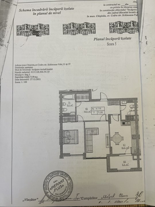 Se oferă spre vânzare un apartament spațios, amplasat într-un complex locativ nou, construit de compania Exfactor.