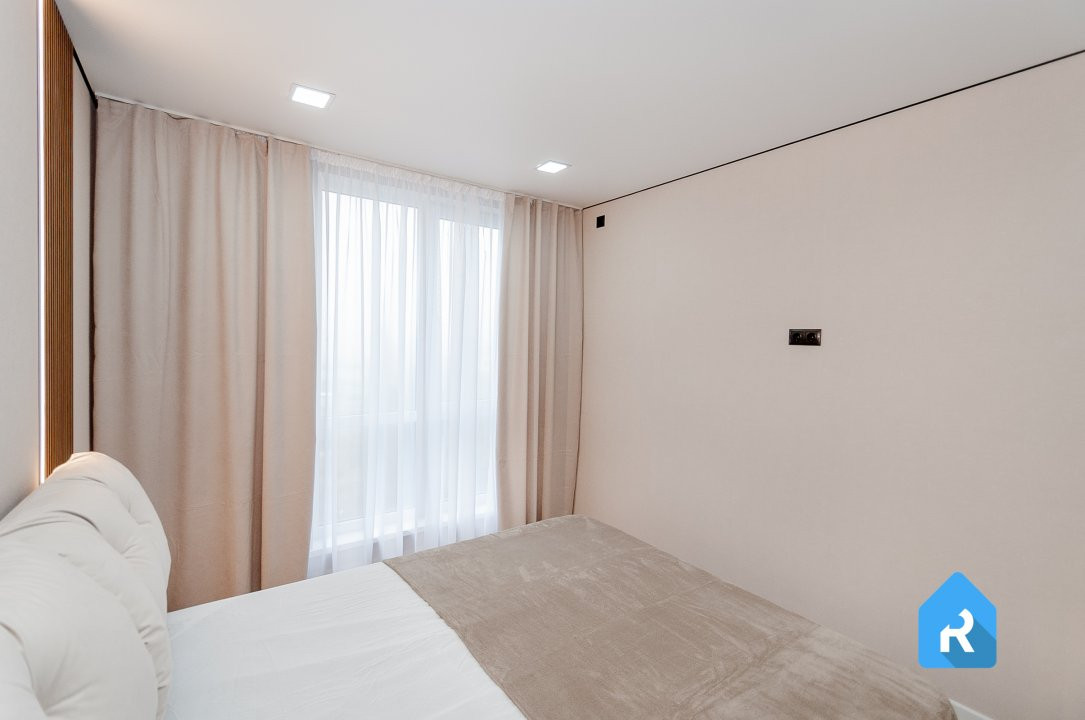 Apartamentul se extinde pe o suprafață de 57 mp și este compartimentat în 2 dormitoare separate, bucătărie comasată cu living, logie, bloc sanitar.