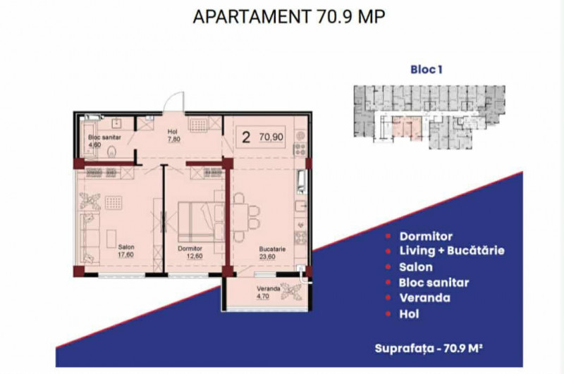 Compartimentare: 2 camere, bucătărie, 2 blocuri sanitare, antreu, 2 balcoane.