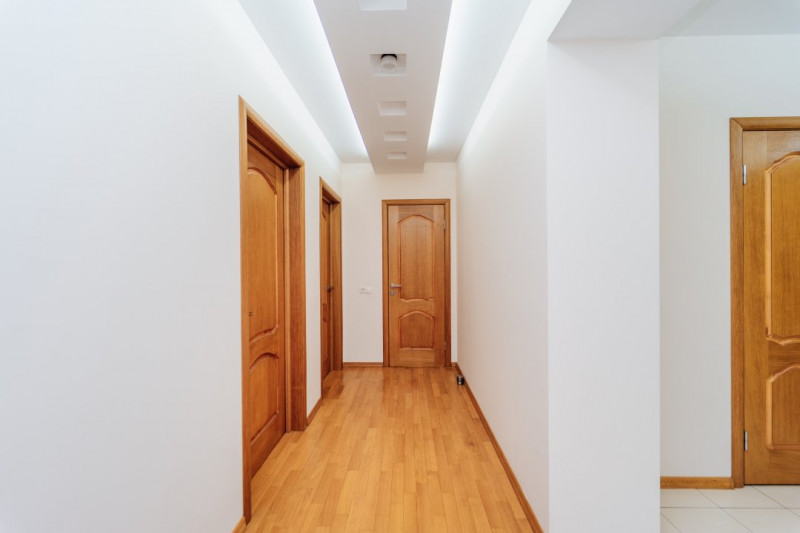 Uși din lemn masiv de stejar — un accent premium, care subliniază calitatea locuinței.