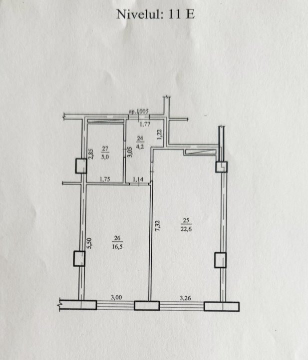Apartamentul se află la etajul 10, cu vederea spre drumul central, cu o suprafață de 48,3mp.