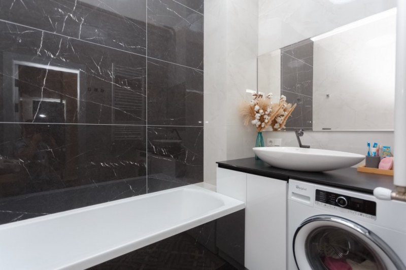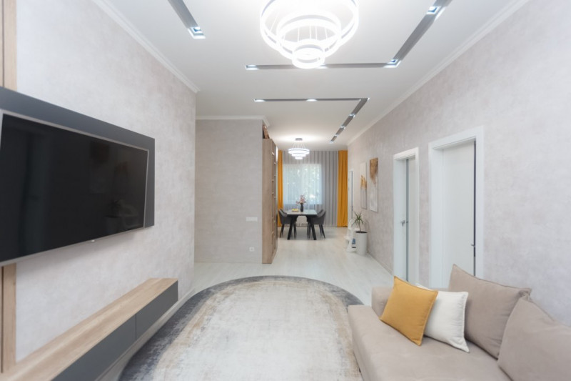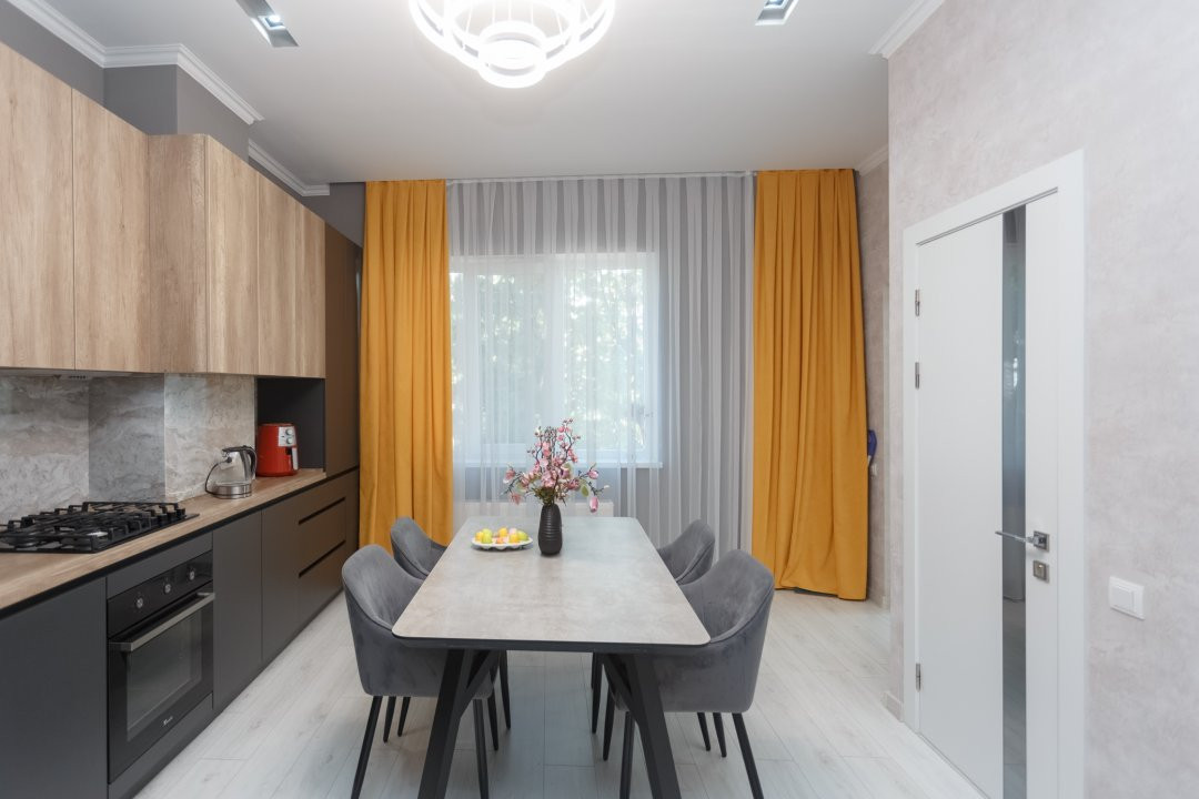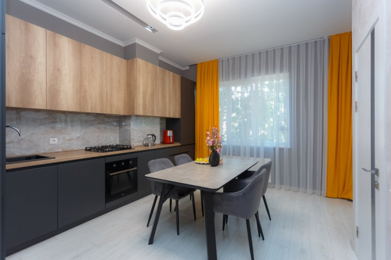 Locuința beneficiază de finisaje de înaltă calitate, cu o reparație euro impecabilă.