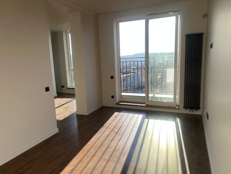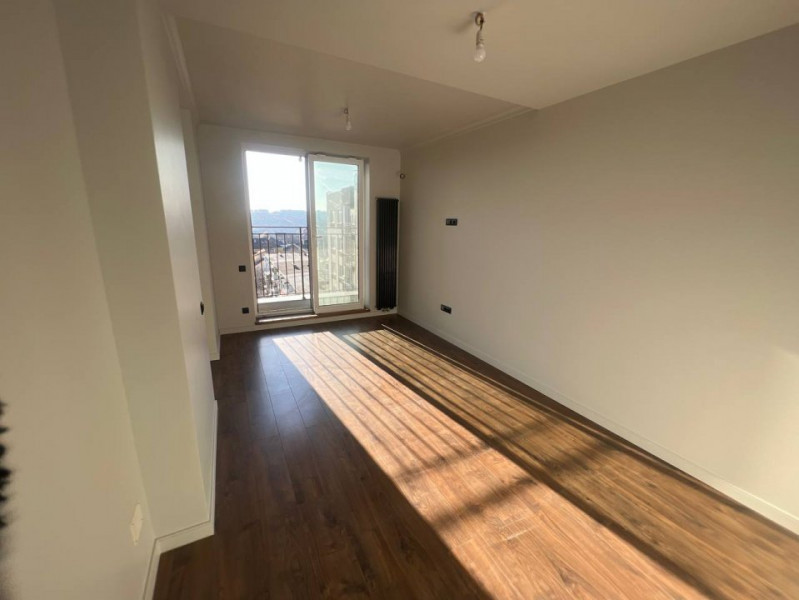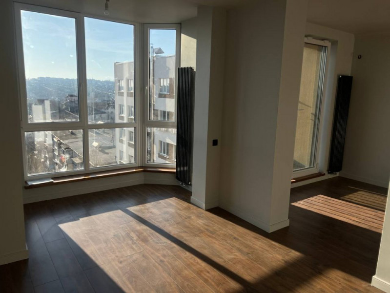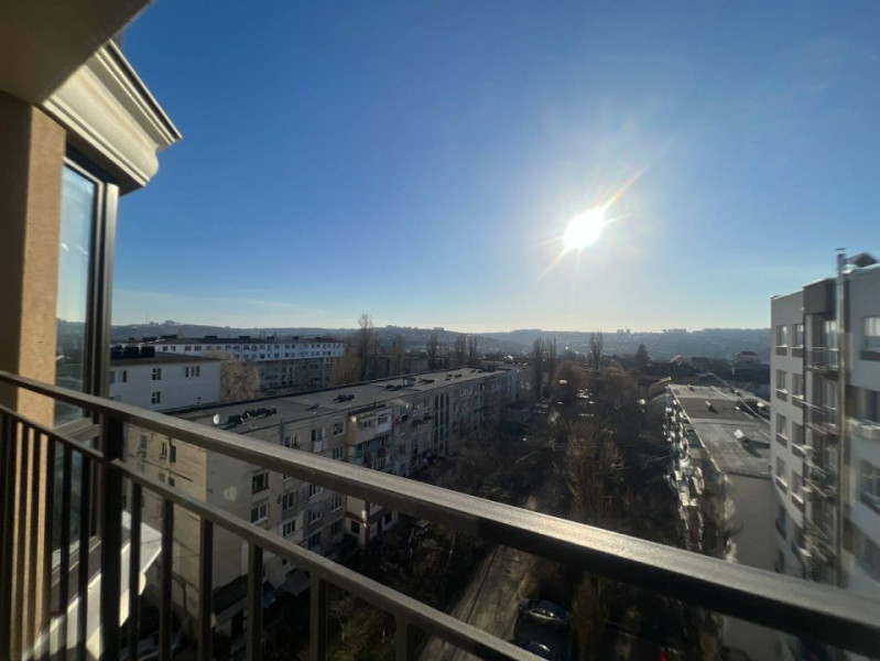 Situat la etajul 8 din 9, apartamentul oferă o priveliște panoramică datorită geamurilor mari.