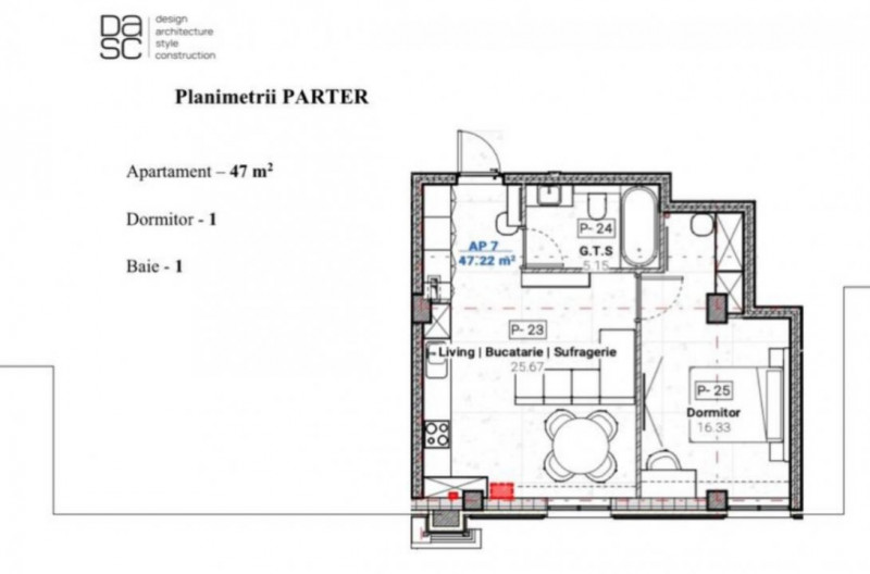 Apartamentul are o suprafață de 47mp, este amplasat la etajul 1 din 4 și beneficiază de un nivel de finisaje și dotări de excepție, pregătit pentru a vă oferi tot confortul necesar:
