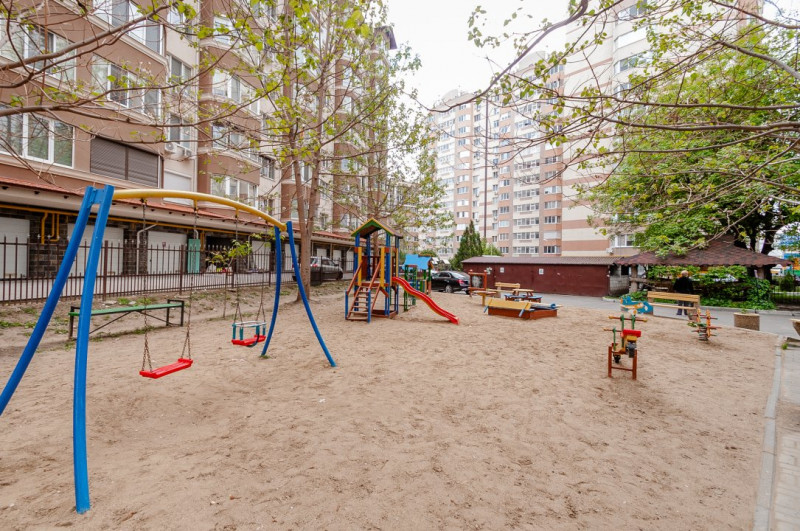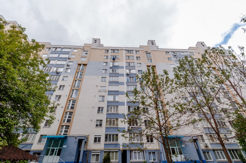 Locuința este situată într-un bloc nou, la etajul 8 din 11, în sectorul Buiucani, bd. Alba Iulia.