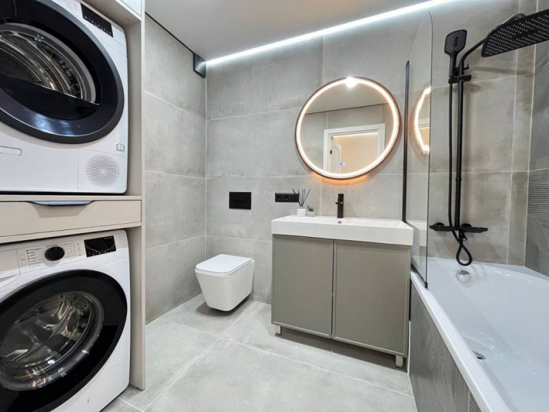 Se oferă spre vânzare un apartament modern și complet utilat, situat în blocul nou Newton House, pe strada Ioana Radu 27, sectorul Buiucani.