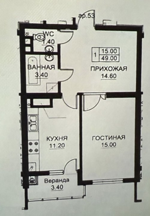 Suprafață: 49 mp, amplasat la etajul 3 din 12;