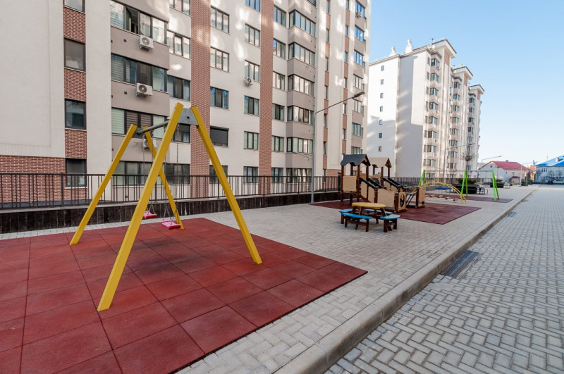 Complexul rezidențial dispune de curte amenajată, cu teren de joacă pentru copii și zone de odihnă, oferind un mediu confortabil și sigur pentru întreaga familie.