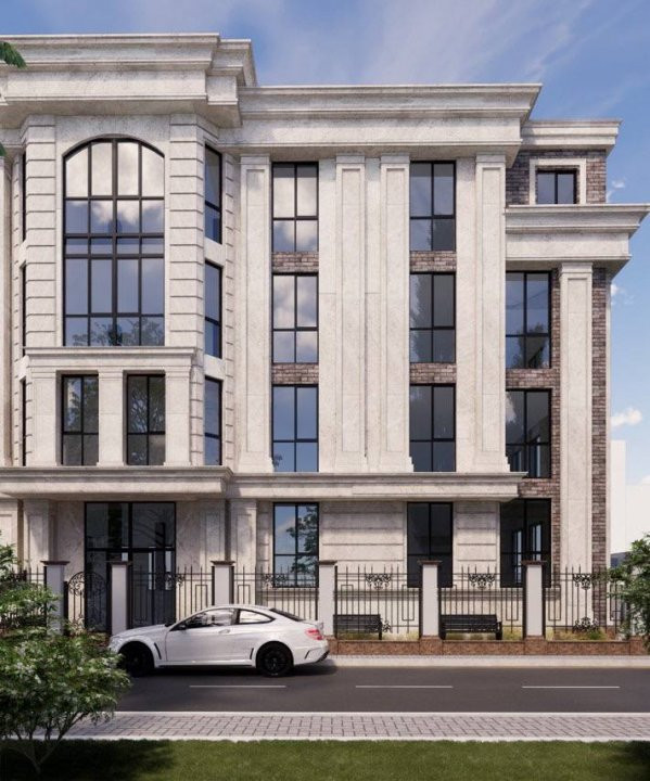 Clădirea dispune de un design arhitectural modern și este amplasată într-o zonă liniștită, cu acces rapid la facilități urbane esențiale.