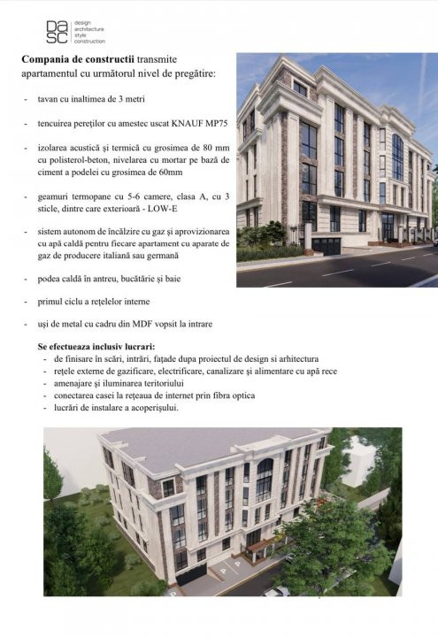 Lucrările suplimentare includ finisaje de înaltă calitate în spațiile comune, sisteme de gazificare, canalizare și iluminat exterior. Toate acestea sunt parte dintr-un proiect realizat cu grijă pentru a crea un mediu de locuit confortabil și elegant.