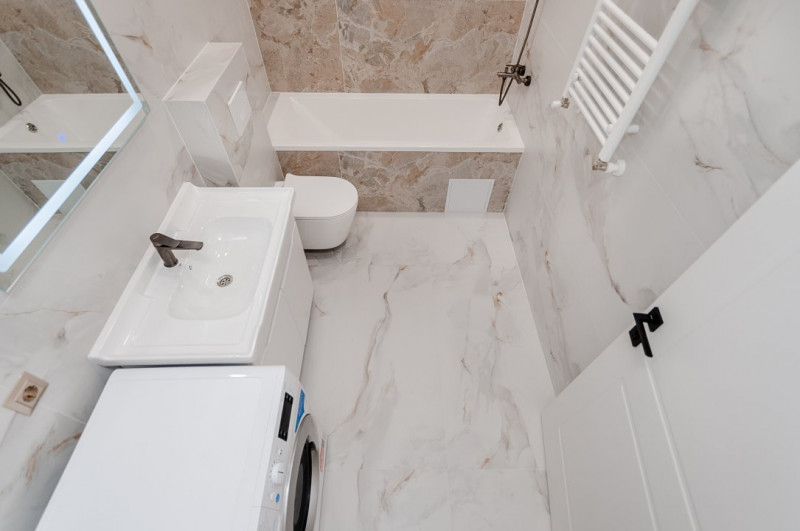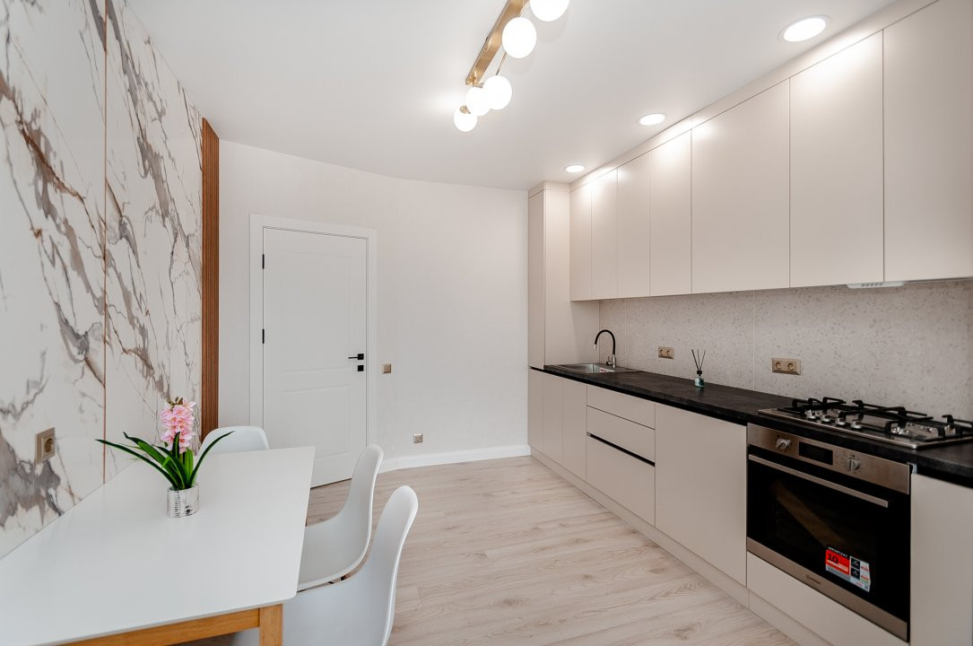 Locuința beneficiază de reparație euro, finisaje de calitate superioară, încălzire autonomă și sistem de aer condiționat, oferind confort pe tot parcursul anului.