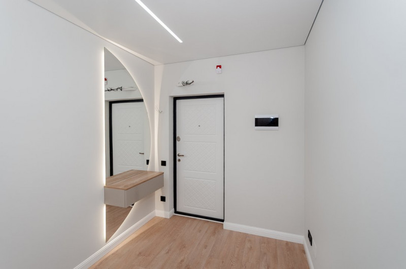 Situat la etajul 9 din 10 al unui bloc nou, acest apartament are o suprafață totală de 71 mp și este compartimentat inteligent în: