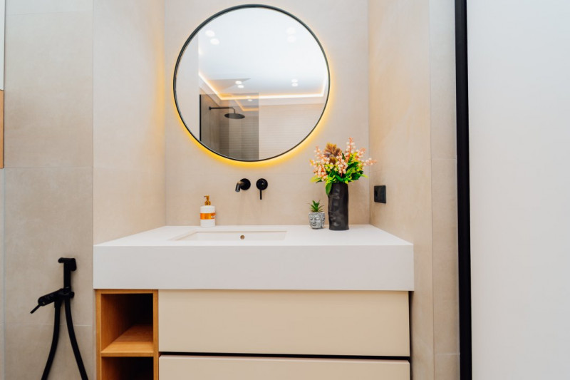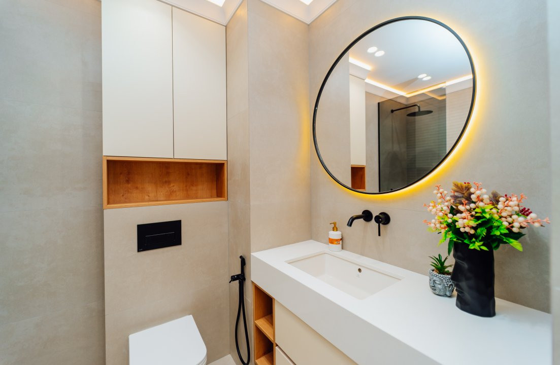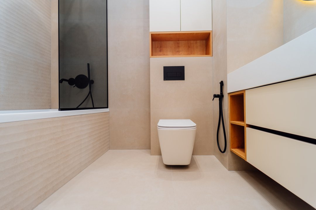 Bloc sanitar modern, finisat cu materiale de calitate.