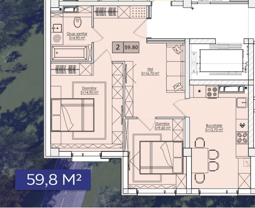 Apartament de vânzare cu 2 camere și living în complexul rezidențial Estate BellaVista, Dumbrava!