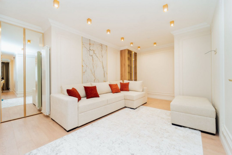 Apartamentul se află la etajul 8 din 11, oferind o priveliște superbă prin geamurile panoramice care inundă spațiul cu lumină naturală. Reparația este executată calitativ, în nuanțe plăcute, cu un design modern și o atmosferă caldă.