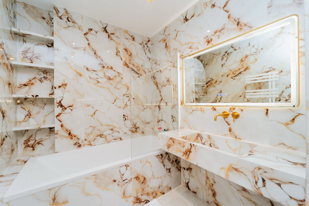 - Baie stilată și funcțională, amenajată cu materiale de calitate;