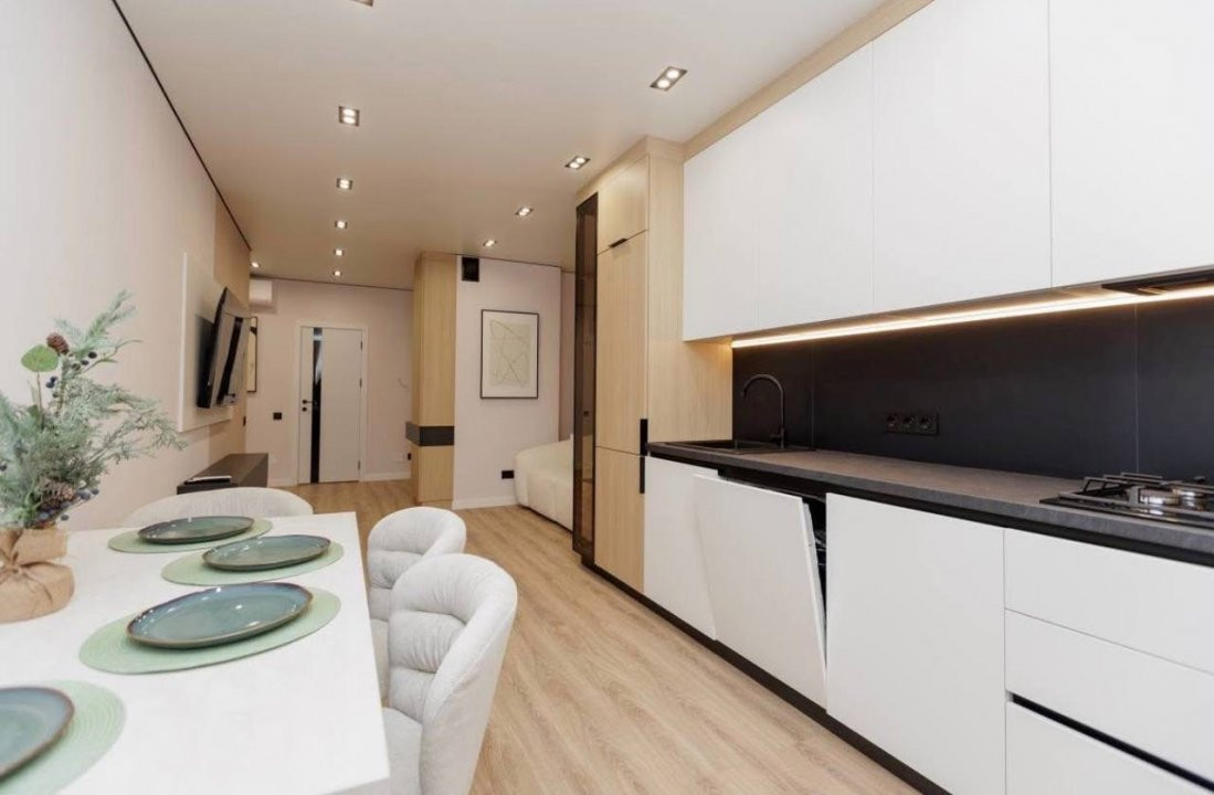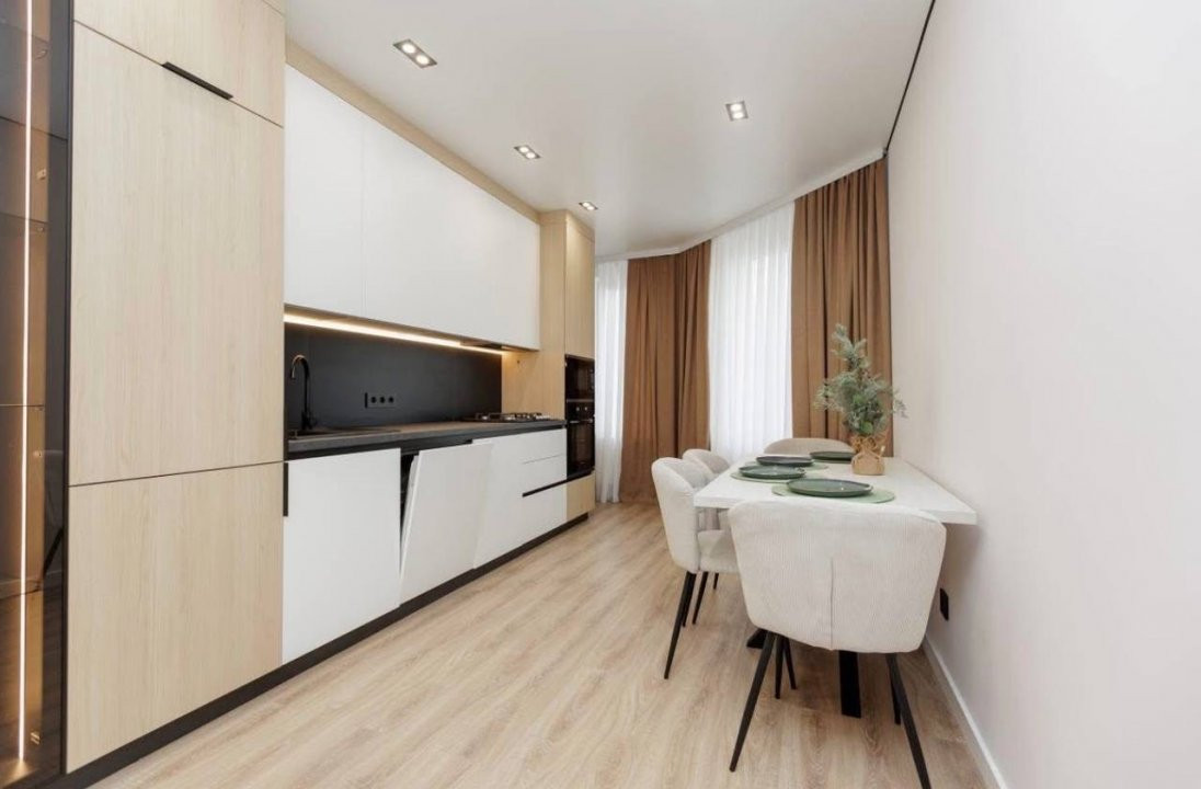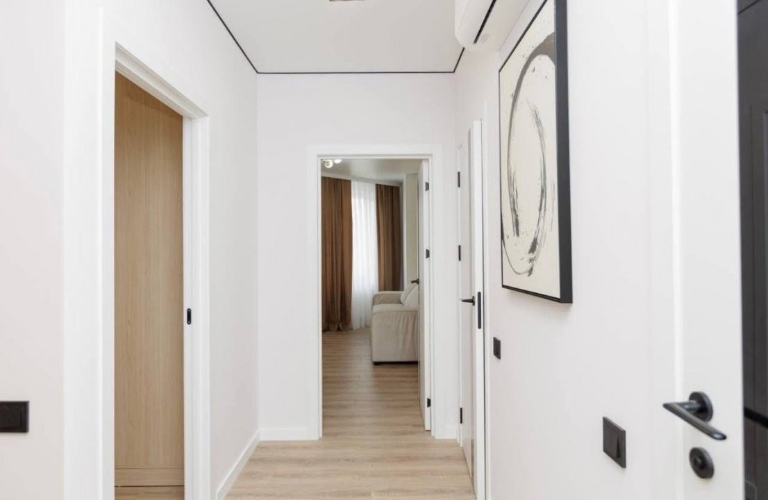 Compartimentare: 2 camere, living, bucătărie, bloc sanitar și antreu.