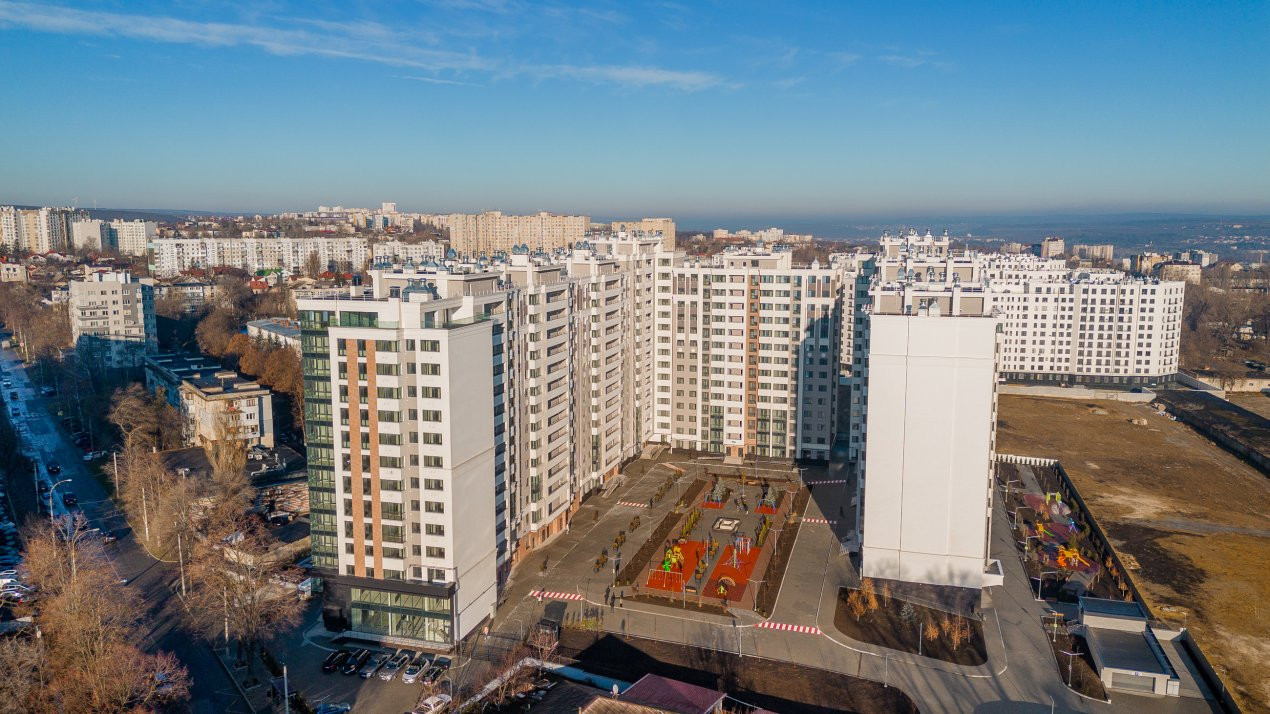 Teritoriul complexului locativ va fi amenajat cu zone de recreere verzi, cu un teren complex de joacă pentru copii, la fel va fi instalat și un havuz modern.