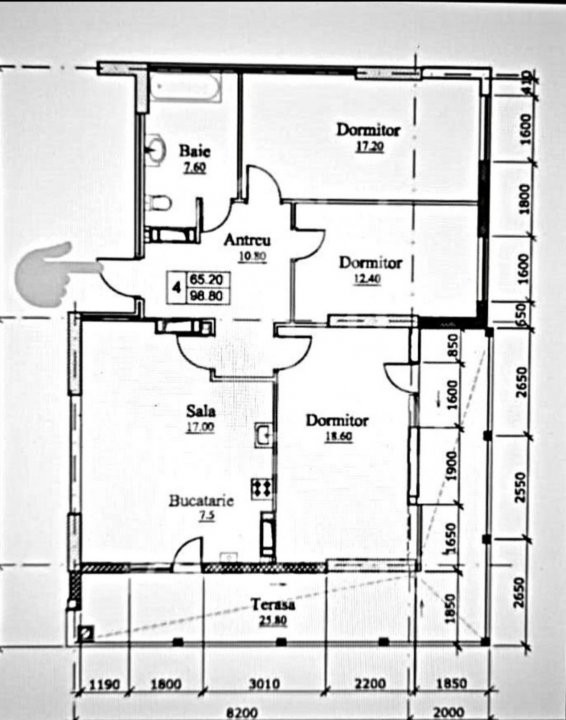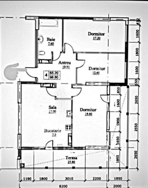 Suprafața locativă: 98 mp; terasă: 26 mp.