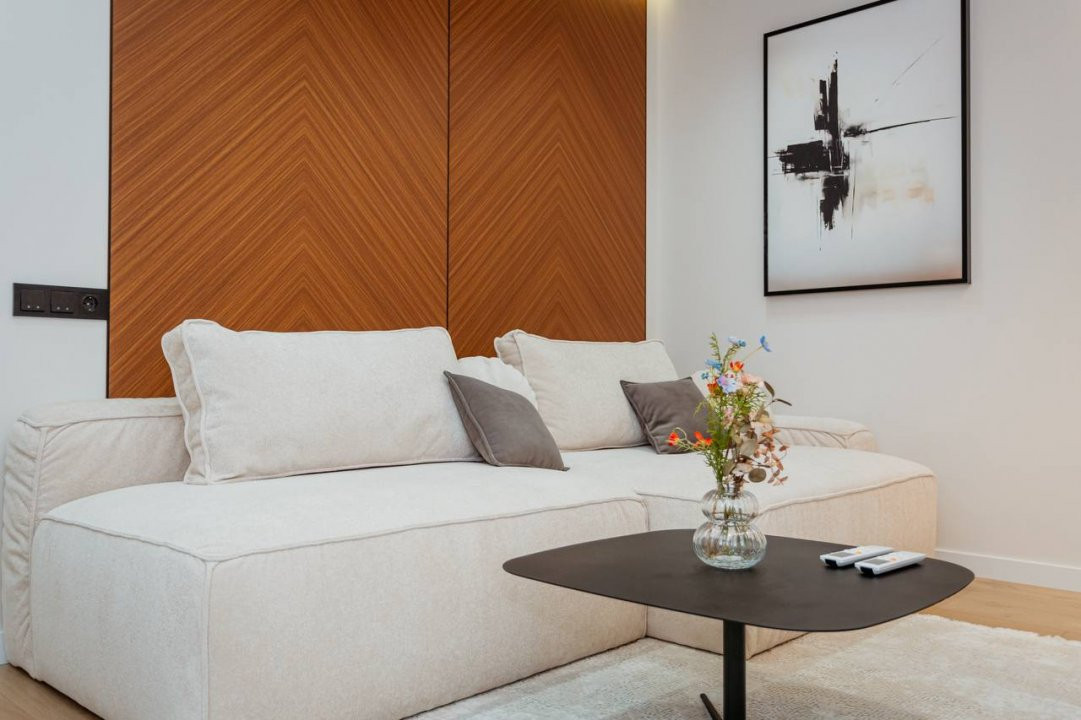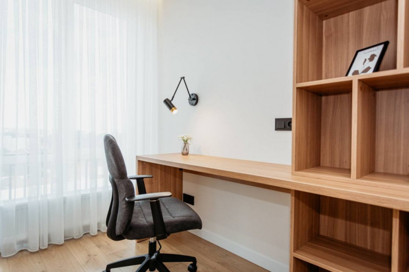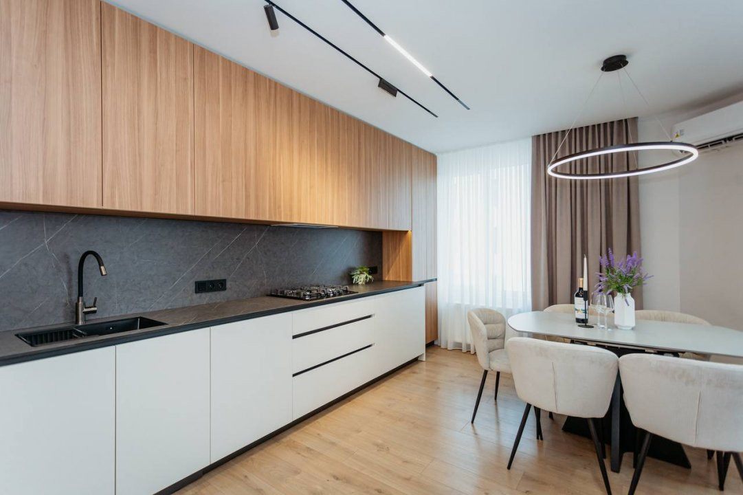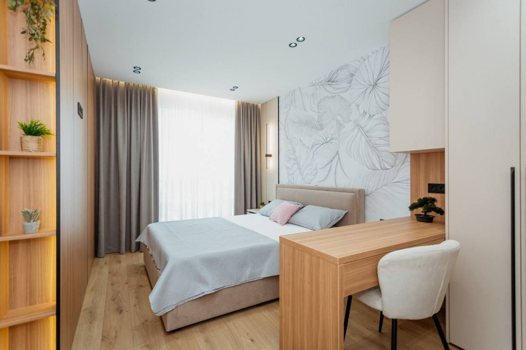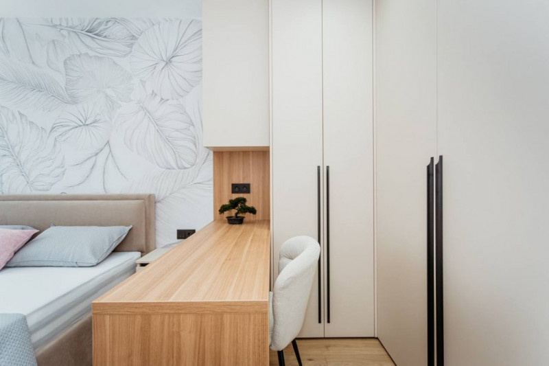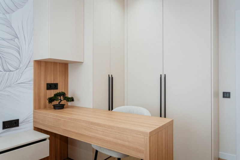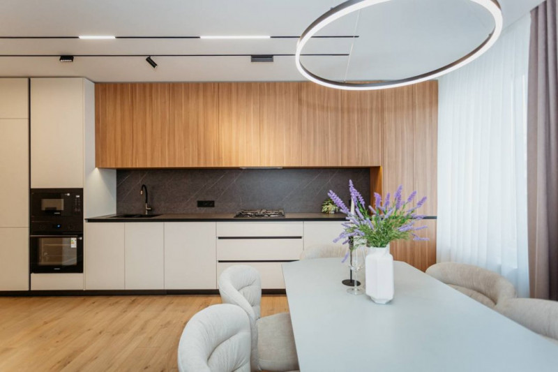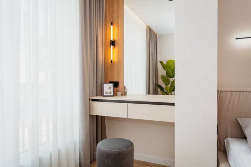Mobilierul și tehnica de uz casnic sunt alese cu gust, creând un ambient echilibrat între funcționalitate și stil.