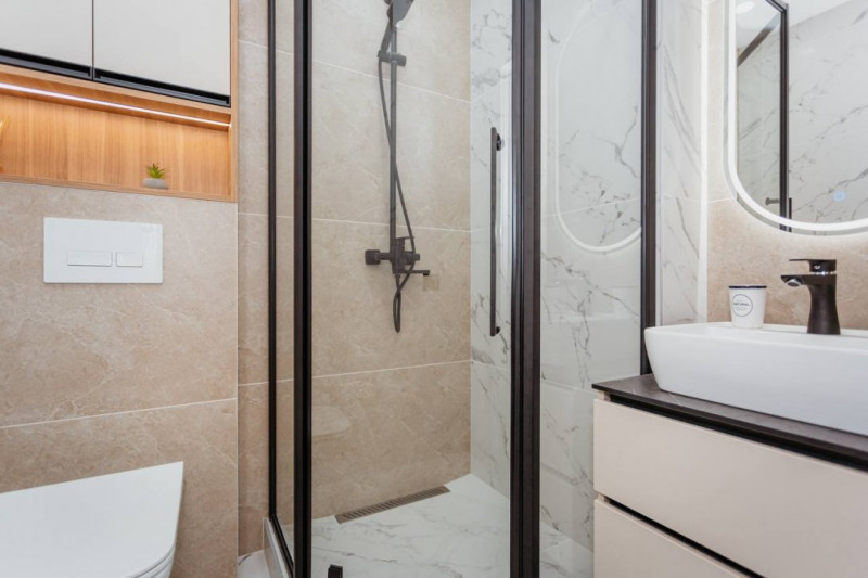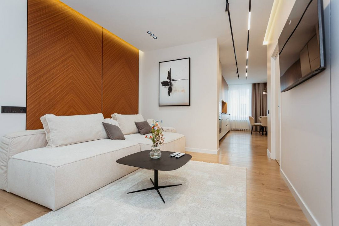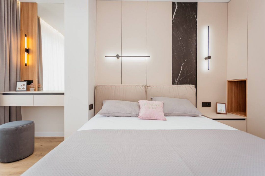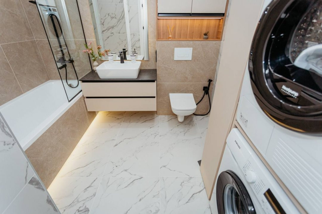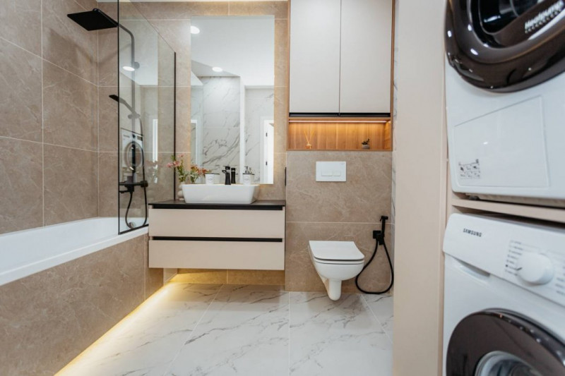 Întregul apartament este dotat cu pardoseală caldă și aer condiționat, asigurând confortul deplin în orice anotimp.