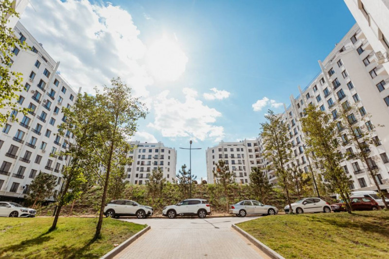 Complexul Newton House oferă o curte interioară amenajată cu grijă, teren de joacă pentru copii, spații verzi și zone de relaxare, perfecte pentru timp petrecut în aer liber.