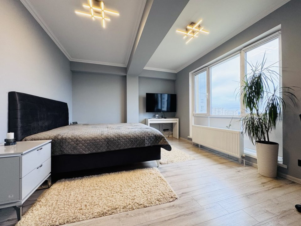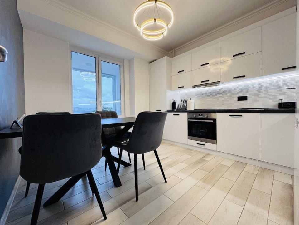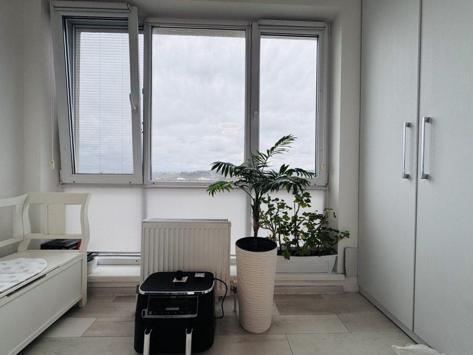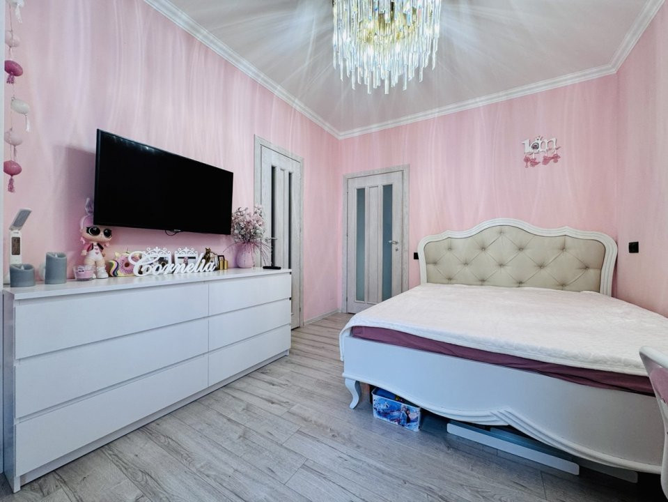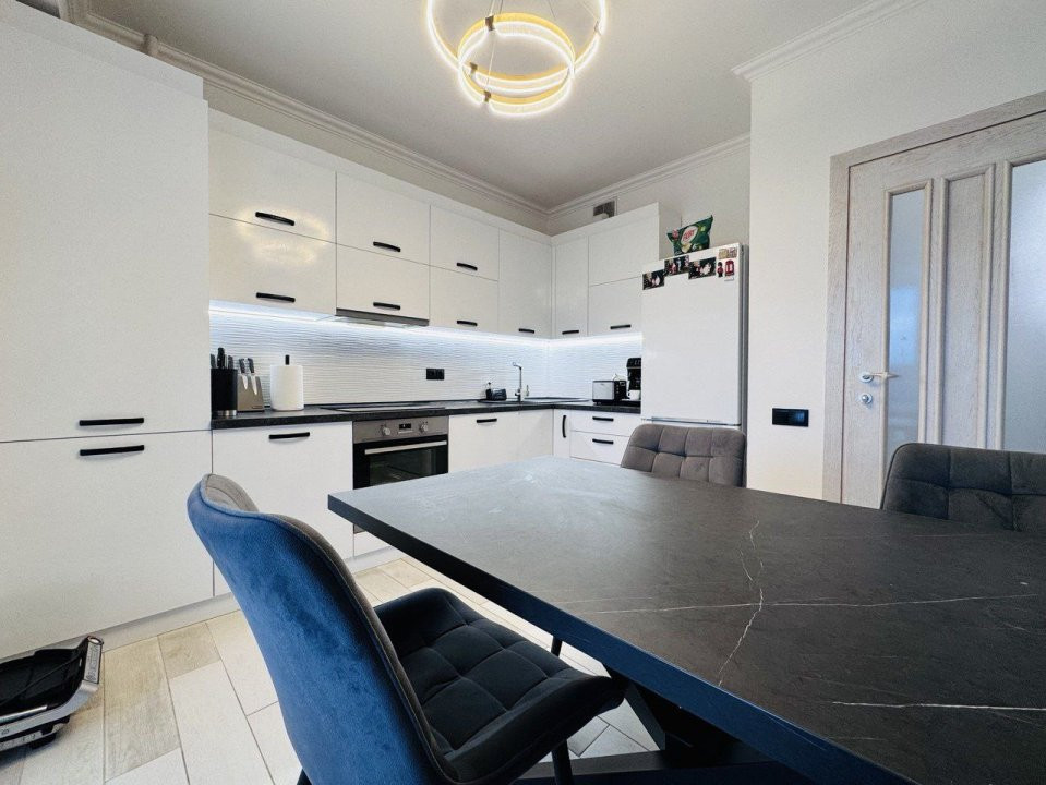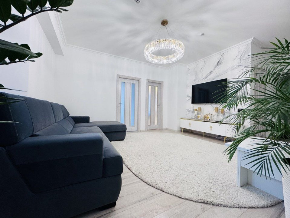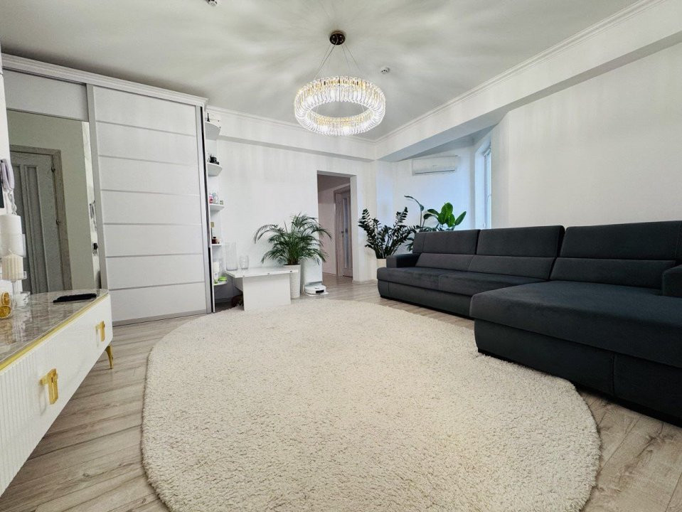 Locuința este compartimentată în: 3 camere, living, bucătărie, balcon, 2 blocuri sanitare și antreu.