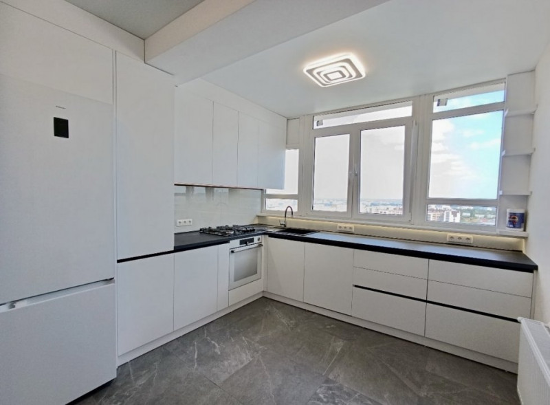 Suprafața constituie 70 mp, amplasat într-un bloc nou, la etajul 14 din 15.