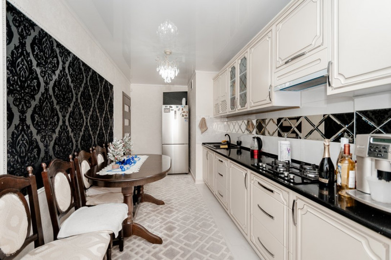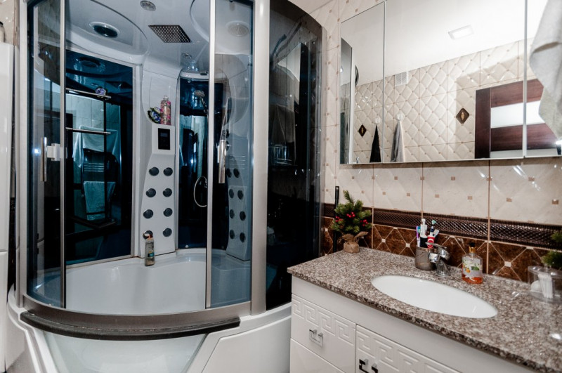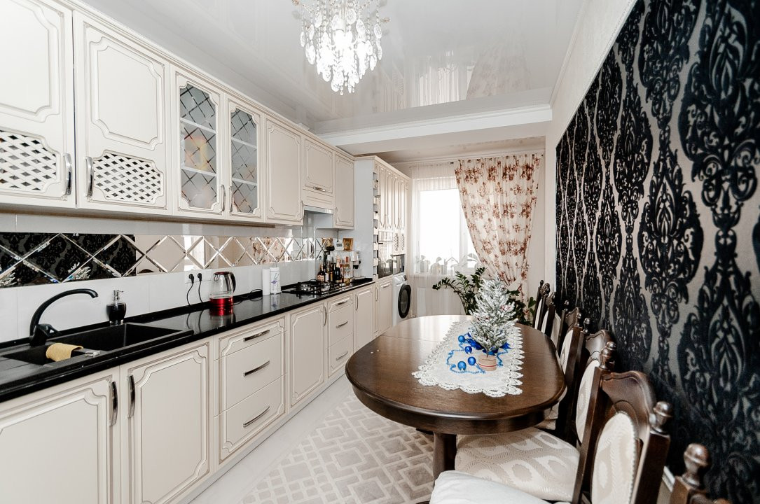 Apartamentul este format din 3 camere, bucătărie, 2 băi și 2 balcoane. Se vinde mobilat și utilat cu tehnica necesară.