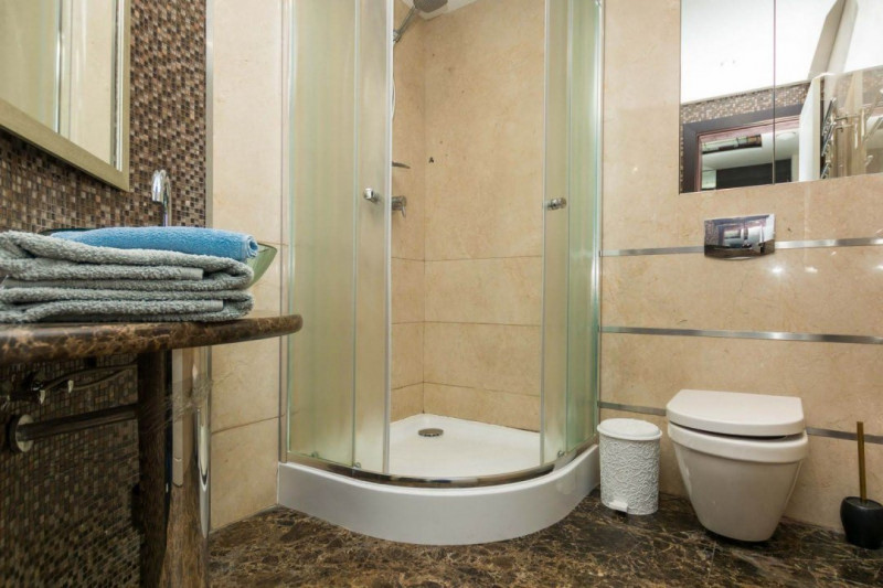 Printre facilitățile apartamentului se numără două aparate de aer condiționat pentru un climat plăcut pe tot parcursul anului și mobilier de calitate superioară, care adaugă un plus de eleganță și funcționalitate.
