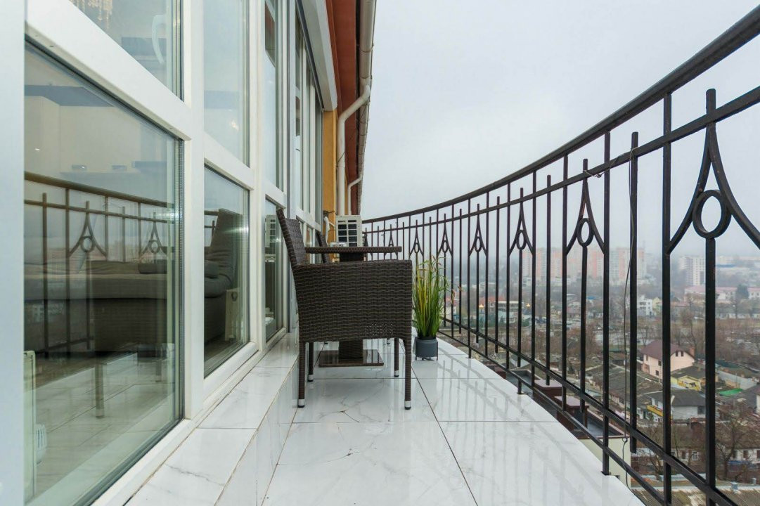 Terasa generoasă vă oferă un loc ideal pentru relaxare și pentru a vă bucura de priveliștea orașului.