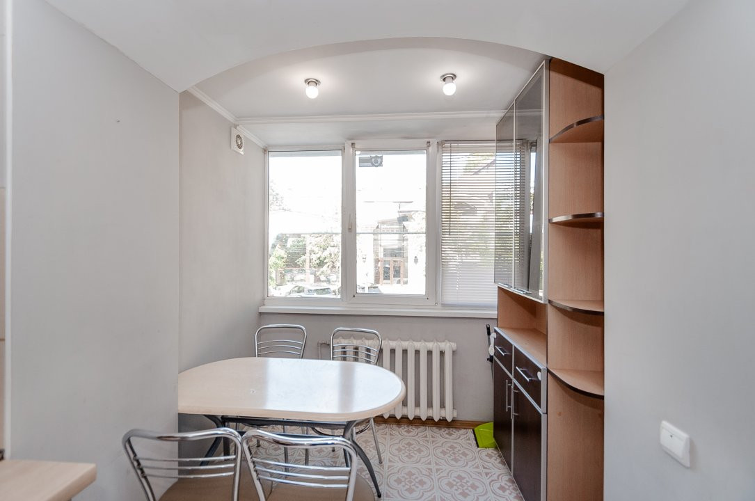 Compartimentarea eficientă include un dormitor luminos, bucătărie utilată și baie.